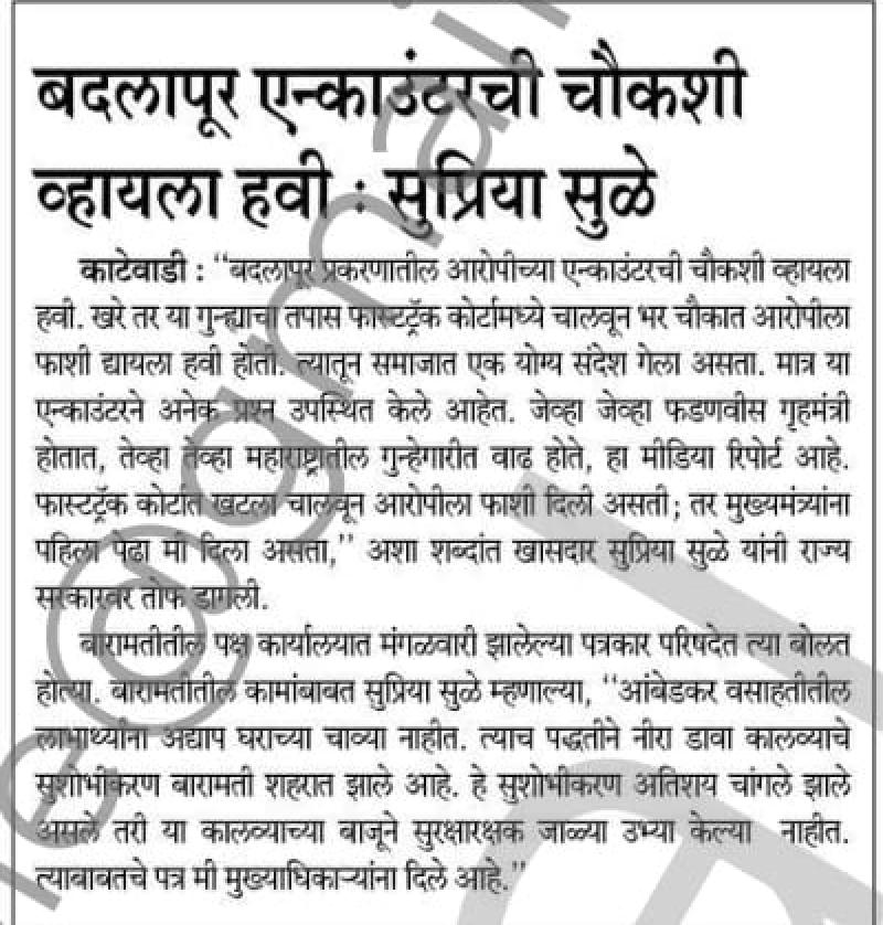 बदलापूर एन्काउंटर चौकशी व्हायला हवी- खासदार सुप्रिया सुळे