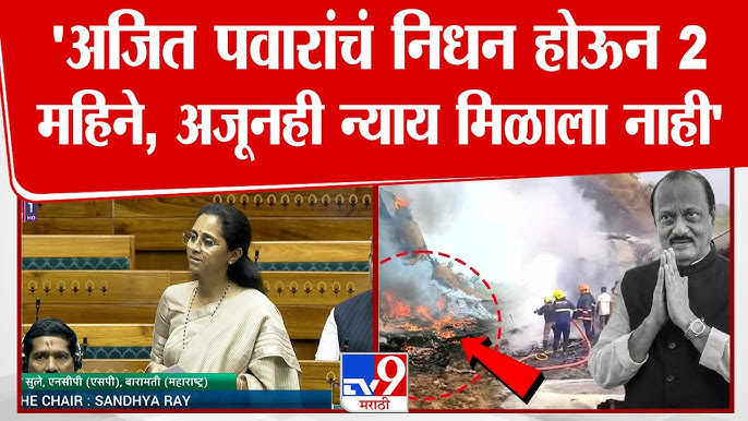 दिवंगत उपमुख्यमंत्री अजित पवार यांच्या विमान अपघातातील निधनाला शनिवारी, 28 मार्चला दोन महिने पूर्ण होतील. या प्रकरणी महाराष्ट्रात एफआरआय दाखल करण्यात येत नसल्याने राष्ट्रवादी काँग्रेस शरदचंद्र पवार पक्षाचे आमदार रोहित पवारांनी अखेरीस महाराष्ट्राशेजारील राज्य कर्नाटक येथे 0 एफआरआय दाखल केला. याच मुद्द्यावरून आमदारा रोहित पवारांनी विधानसभेत आणि आमदार अमोल मिटकरी यांनी विधान परिषदेत अनेक आवाज उठवण्याचाही प्रयत्न केला. परंतु, या विषयावर अर्थसंकल्पीय अधिवेशनामध्येही कोणतीही विशेष चर्चा करण्यात आली नाही. मात्र, लोकसभेमध्ये आज शुक्रवारी (ता. 27 मार्च) शरद पवारांच्या राष्ट्रवादीतील खासदार सुप्रिया सुळे यांनी अजित पवारांच्या विमान अपघाती निधनाचा मुद्दा उपस्थित न्यायाची मागणी केली आहे.
