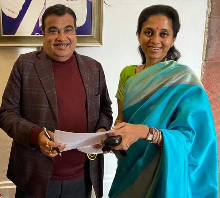 [kshitij online]भीमा नदीवर आगोती ते गोयेगाव-वाशिंबे दरम्यान पूल उभारण्याची खासदार सुळे यांची केंद्राकडे मागणी ; केंद्रीय मंत्री नितीन गडकरी यांना लिहिले पत्र