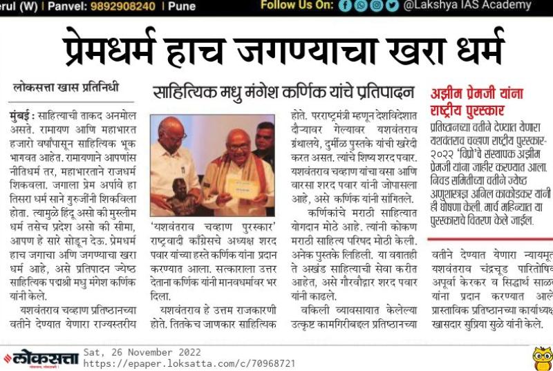 प्रेमधर्म हाच जगण्याचा खरा धर्म-कर्णिक