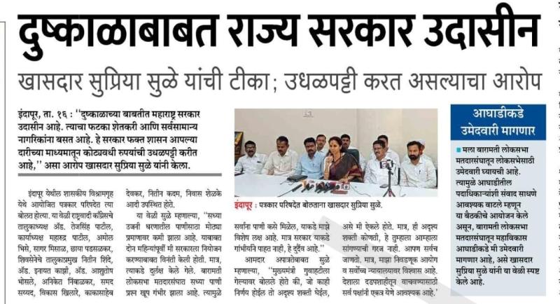 दुष्काळाबाबत राज्य सरकार उदासीन - खासदार सुप्रिया सुळे