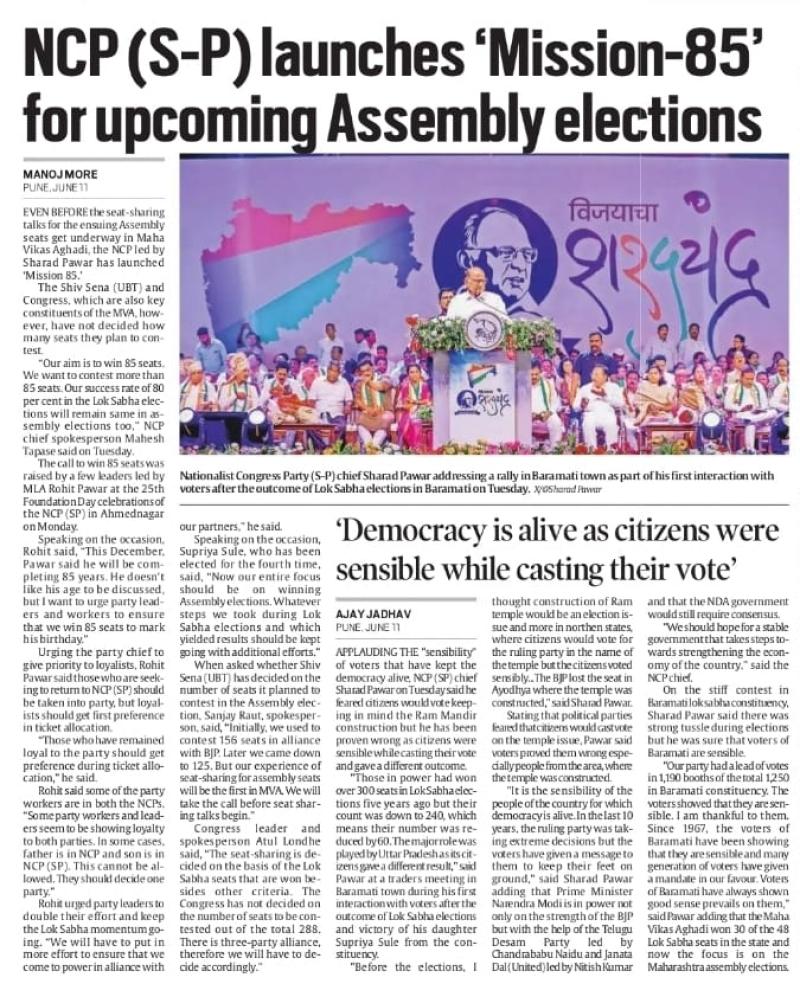 NCP[SP] launches Mission-85 for upcoming Assembly election